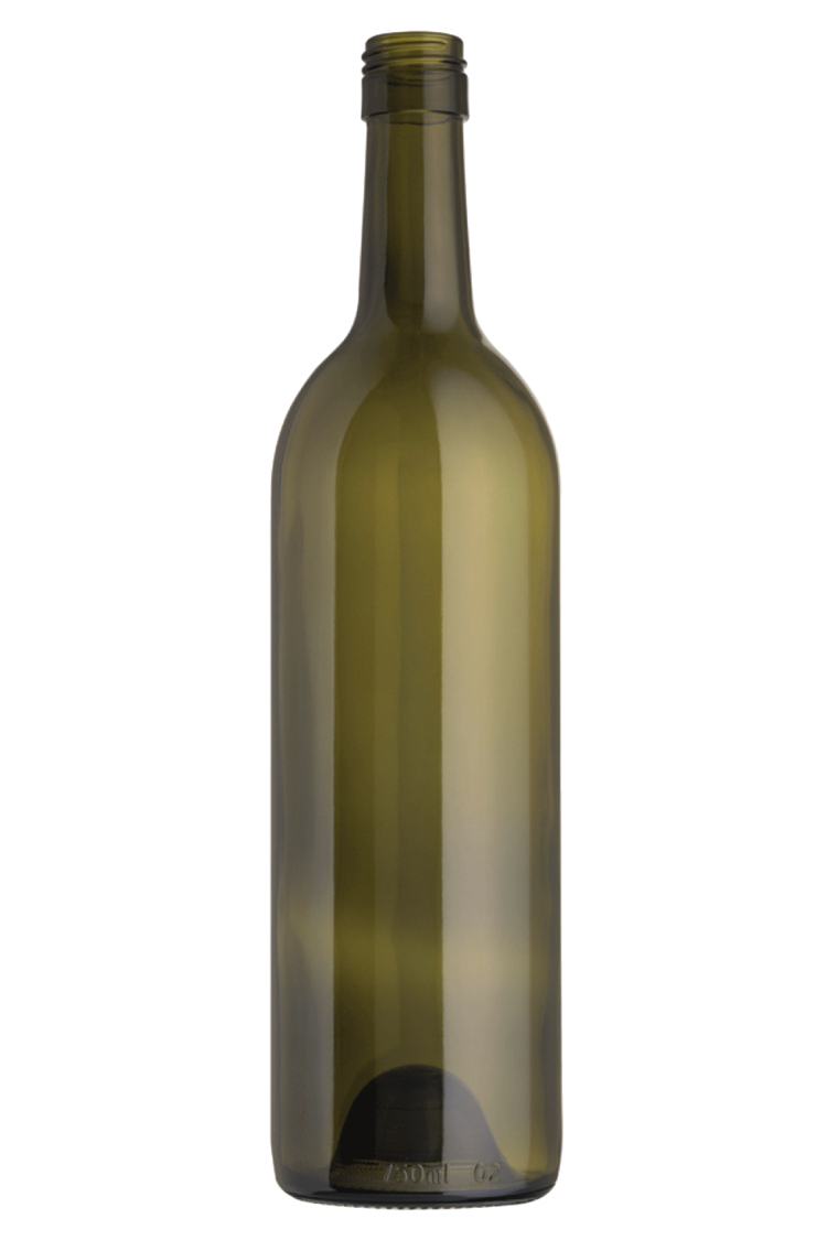 Product Catalog > Stelvin Claret/Bordeaux wine bottle — SPI-1053 Product Specifications: Part #: SPI-1053 Capacity: 750ml Weight: 545g Color: Antique Green, Flint